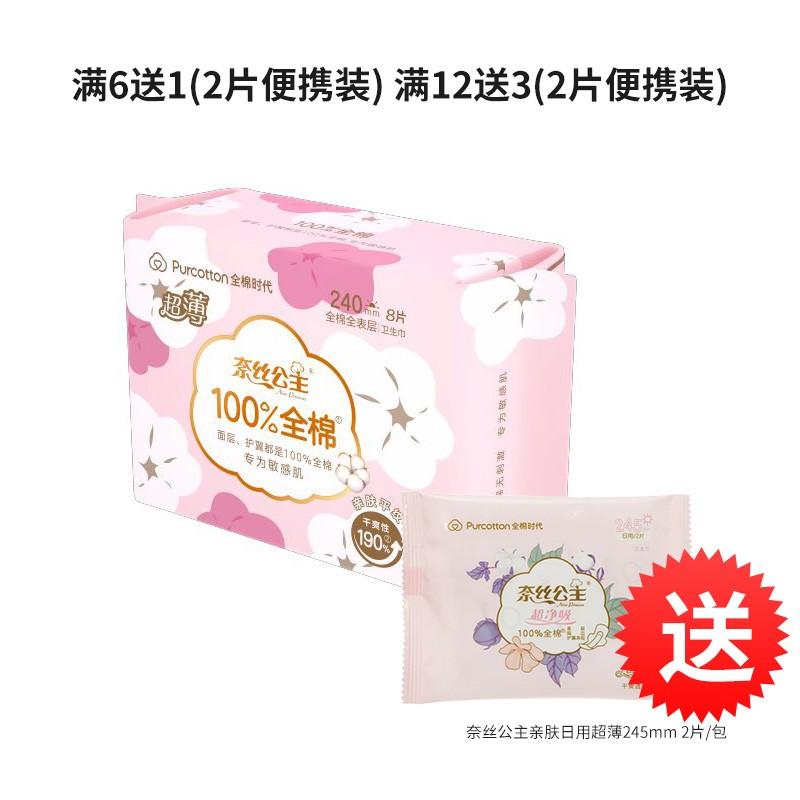 国内发货 全棉时代 奈丝公主全棉全表层亲肤日用240mm 8片/包超薄